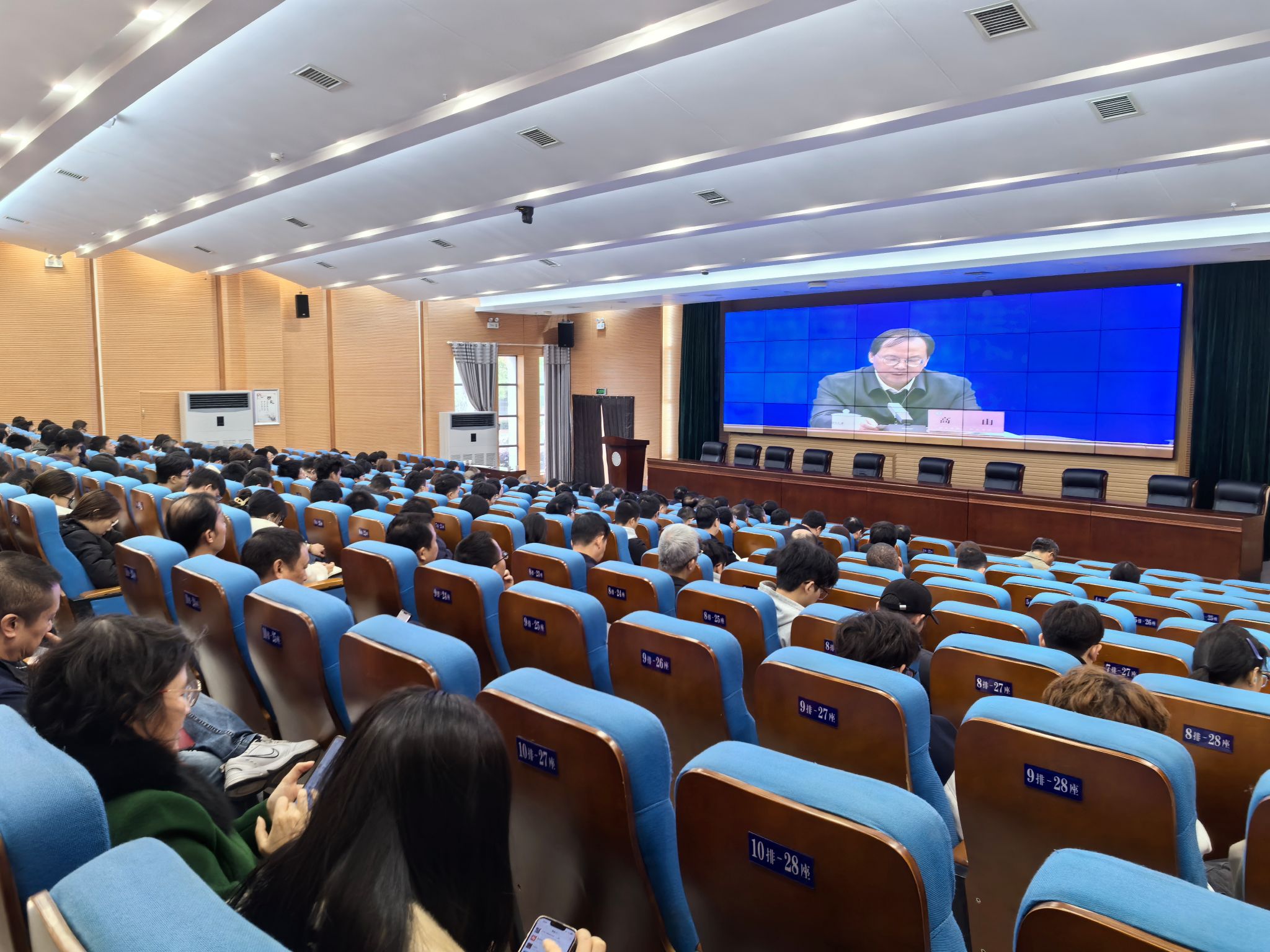 2138CC太阳集团党委书记何振、副校长雷存喜赴现场参加会议,其他在家校领导与各机关职能处室负责人、二级学院党政主要负责人和分管负责人、双创专干以及其他师生代表300余人在学校图书馆报告厅通过线上形式参加会议。
