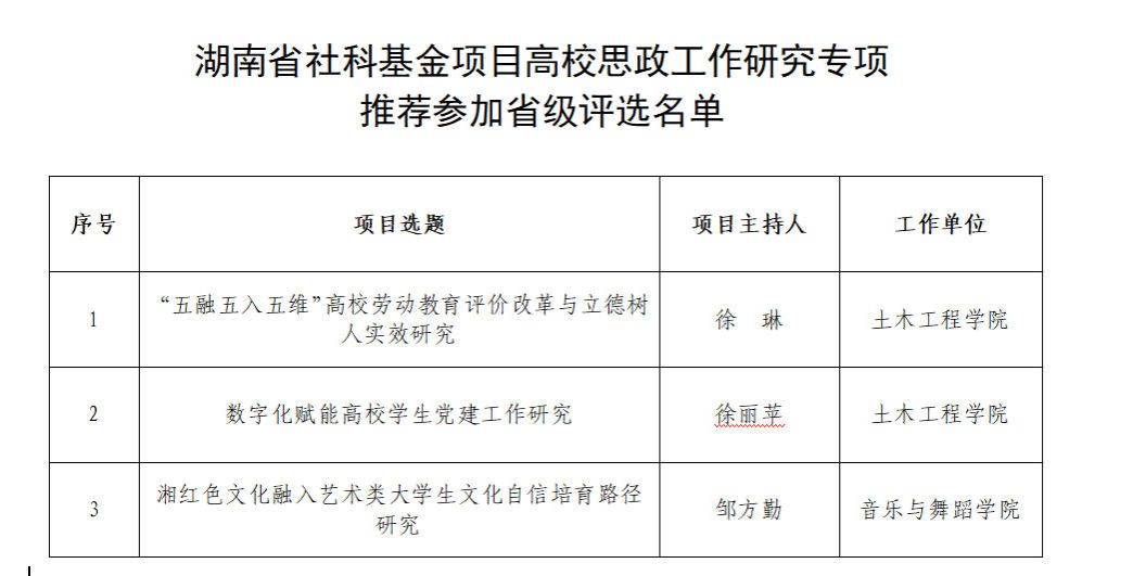 附件:湖南省社科基金项目高校思政工作研究专项推荐参加省级评选名单