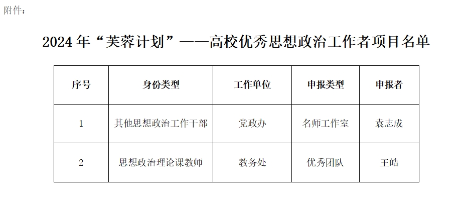 附件:1. 2024年“芙蓉计划”——高校优秀思想政治工作者项目名单