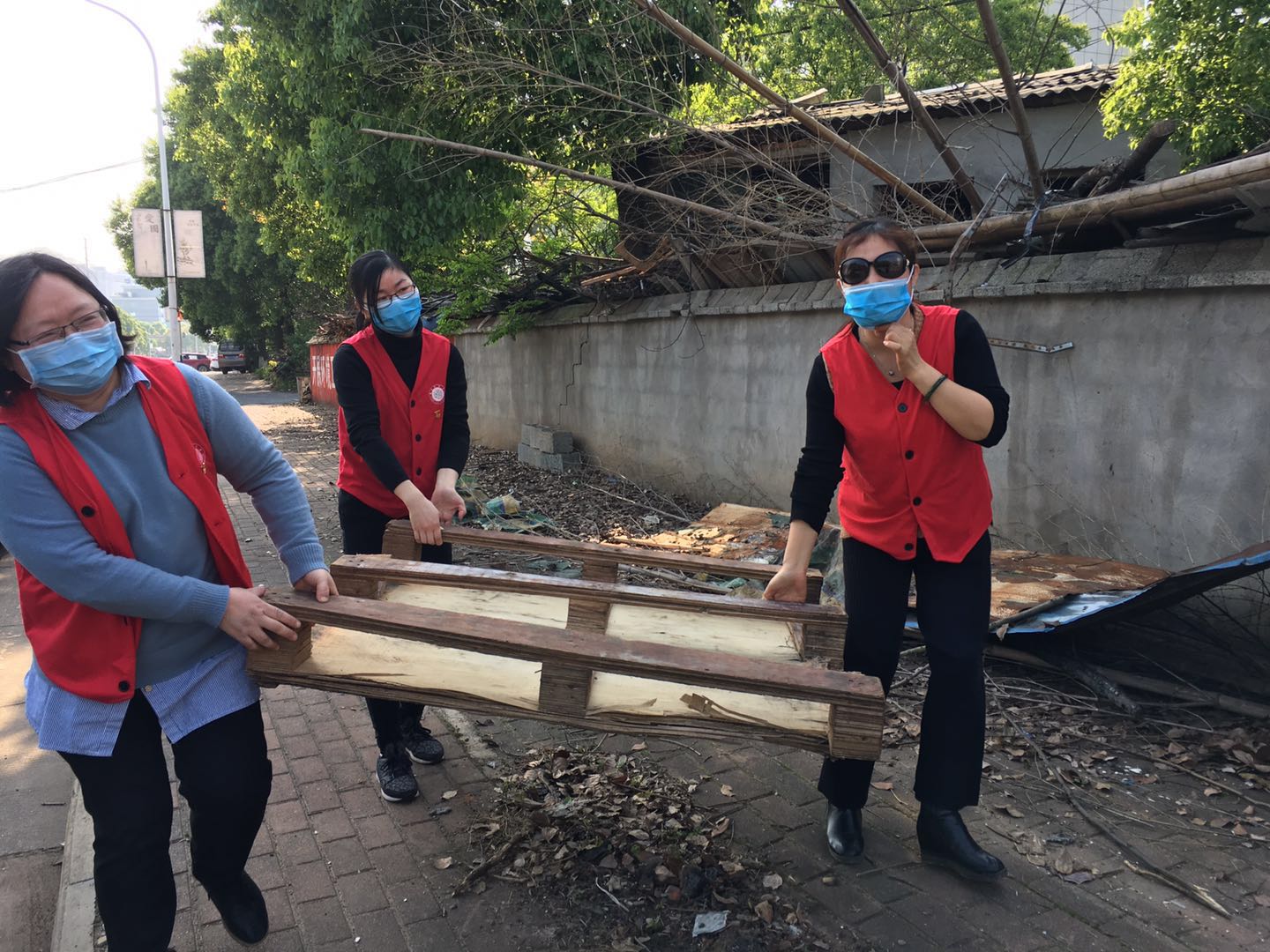 活动中,党员志愿者穿上红马甲,在烈日下徒手整理街边堆放的树枝、木箱等废弃物,清的清、扫的扫,从街边杂物到路边垃圾、柴堆、树枝等,不放过任何死角。在整个活动中各个党员在汤书记的带领下充分发挥了不怕脏、不怕累的奉献精神,用自己的行动感染身边的群众,引导更多群众积极主动参与到打造洁净生态环境的行列中来。