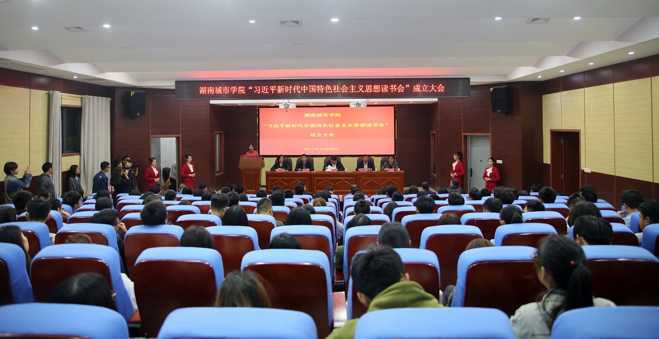 (本网讯)10月29日晚,由学生自主发起并成立的2138CC太阳集团“习近平新时代中国特色社会主义思想读书会”成立大会在建筑规划楼报告厅举行。党委书记罗成翼、副校长谭献良,宣传部、学工部、团委、马克思主义学院、各二级学院学工部门负责人以及读书会首届会员出席大会。