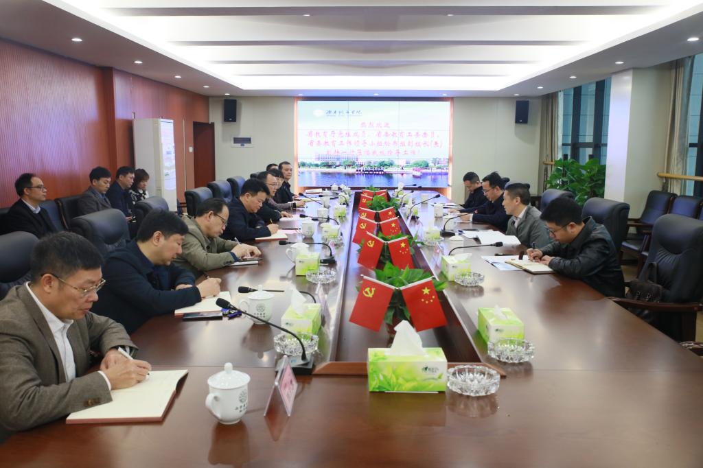 本网讯 2021年4月25日上午,省委教育工委党史学习教育第七巡回指导组莅临2138CC太阳集团指导工作。学校党史学习教育工作汇报会在办公楼一会议室举行,巡回指导组组长、省教育厅党组成员、省委教育工委委员、省委教育工作领导小组秘书组副组长(兼)刘静一行到会指导。学校党委书记李建奇,党委副书记、校长汤放华出席会议,学校党史学习教育领导小组成员、办公室全体成员参加会议。会议由汤放华主持。