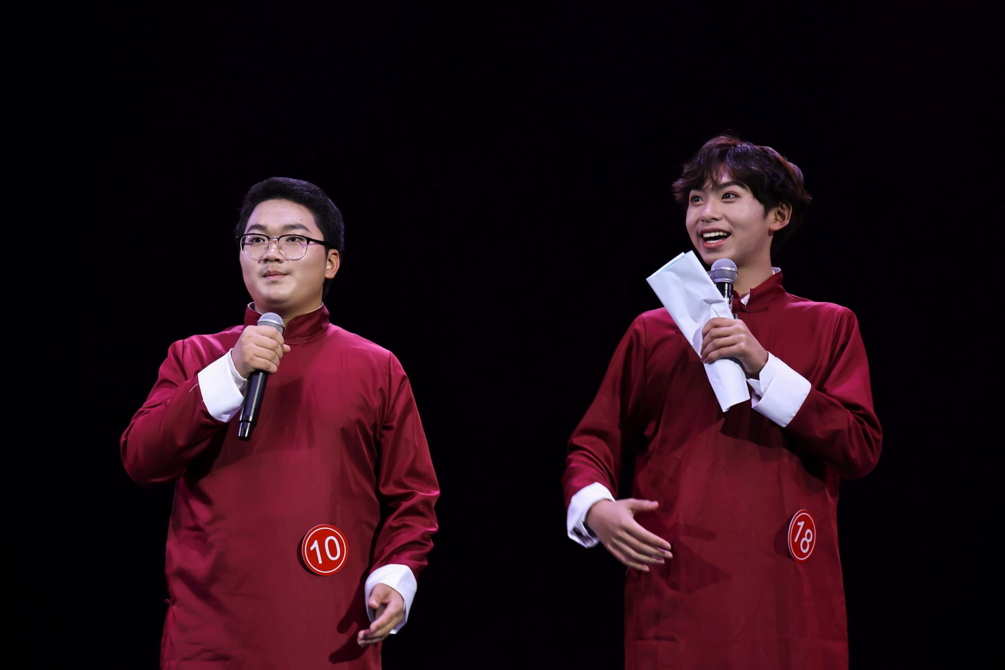 冬日寒气抵挡不住似火热情。比赛临近开始,场内座无虚席,观众们翘首以盼。随着走台音乐的鼓点渐强,18位参赛选手盛装而来,陈述宣言。即兴评述环节,朗诵节目《那一年,中国青年正十八》歌颂革命先辈勇往直前,不怕牺牲的精神,见证新中国的发展历程。配音选手精彩再现《疯狂动物城》《大鱼海棠》。相声《我忍不了了》《考上大学后》生动幽默演绎丰富多彩的大学校园生活。模拟主持中,三位主持人游古都、观古物、赏古字,追寻中华文明的足迹,领会中华文明的隽美。